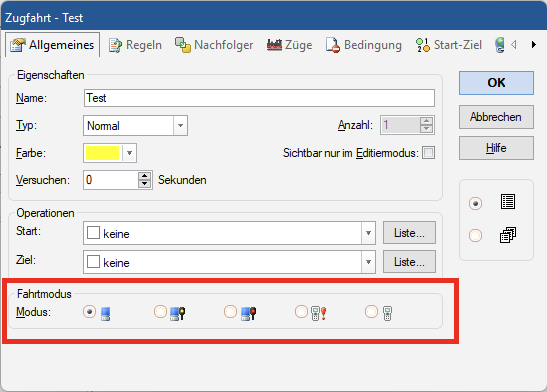 Für verschiedene Zugfahrten können Sie verschiedene Fahrtmodi einstellen. Damit ist es möglich, einen Teil Ihrer Anlage vollautomatisch zu betreiben, in einem anderen Teil als Lokführer unter Kontrolle des Fahrdienstleiters zu agieren, einen dritten Anlagenteil für Rangierfahrten zu reservieren und letztendlich einen vierten Teil ganz von der Kontrolle des Fahrdienstleiters auszunehmen.