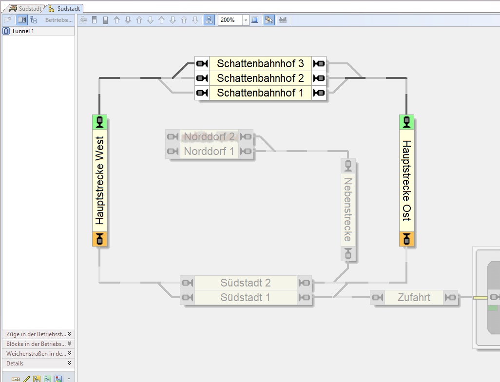 Tunnel können als Betriebsstellen eingerichtet werden, um auf einfache Weise die Ansteuerung von Lokfunktionen zu steuern.