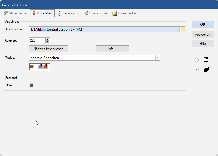 Die komplette Steuerung der Drehscheibe basiert in Wahrheit auf Weichenbefehlen. Jedes Abfahrgleis, Drehung, Home-Befehl, … Ist in Wahrheit eine Weichenadresse, z.B. 225 rot/grün oder rund/gerade etc. Das ist wichtig zu verstehen, denn weiter unten benötigen wir Befehle für „Clear“, „Home“, „Stopp“ etc., um den Decoder zu programmieren. Diese Befehle bringt TrainController von Haus aus nicht mit. Wir können diese aber als Taster anlegen. Hinter die Funktion/Operation der Taster legen wir gleich die Weichenadressen/-befehle. Das erklären wir aber genauer weiter unten zum Thema "Programmierung mit TrainController vorbereiten".