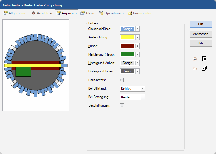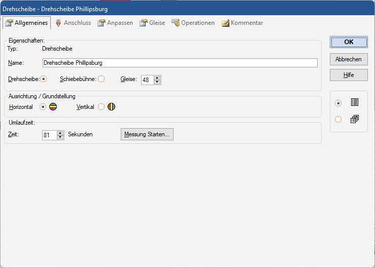 Unsere Einstellungen im TrainController Gold für Drehscheibe, Schiebebühne und Segmentdrehscheibe