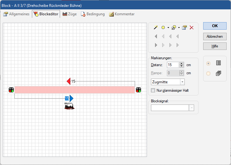 Im Register „Gleise“ ist der Button, der zu den „Blockeigenschaften“ führt.